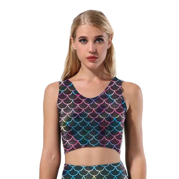 Women Mermaid Leggings Fish Scale Shiny Printed Pants Sexy Hologram Tights With Top
